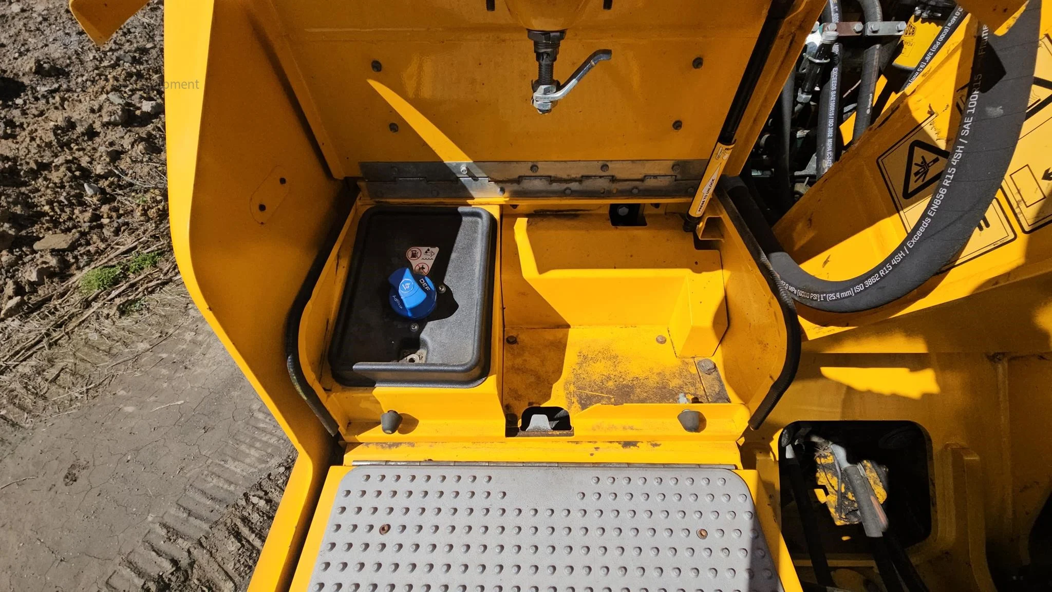 Powered by the reliable JCB EcoMAX 444 TCA (109 HP), it delivers strong performance and smooth operation. The long fixed undercarriage with steel tracks is in great shape, with about 80% undercarriage life remaining. Operating weight is 34,500 lb with a top travel speed of 4.1 mph.