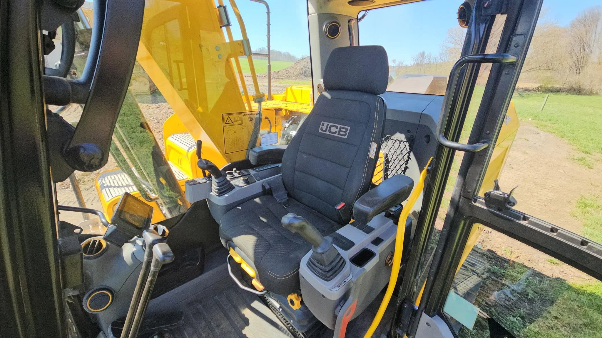 This 2019 JCB 150X LCD excavator has only 1,460 hours and is in excellent mechanical and cosmetic condition. It features a clean EROPS enclosed cab with heat, cold A/C, radio, and a comfortable cloth seat. All cab functions and the large multifunction display work perfectly.