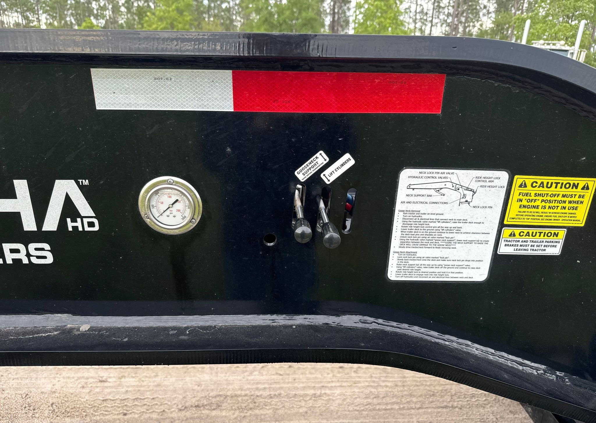 This 2024 Alpha HD A120HDG-SF2 is a heavy-duty detachable-neck lowboy built for transporting large construction equipment, dozers, excavators, forestry machines, and other oversize loads. Equipped with quad axles, air suspension, self-contained hydraulics, a Honda power unit, and an included Alpha HD flip axle, this trailer is designed for maximum versatility and DOT-compliant hauling.
